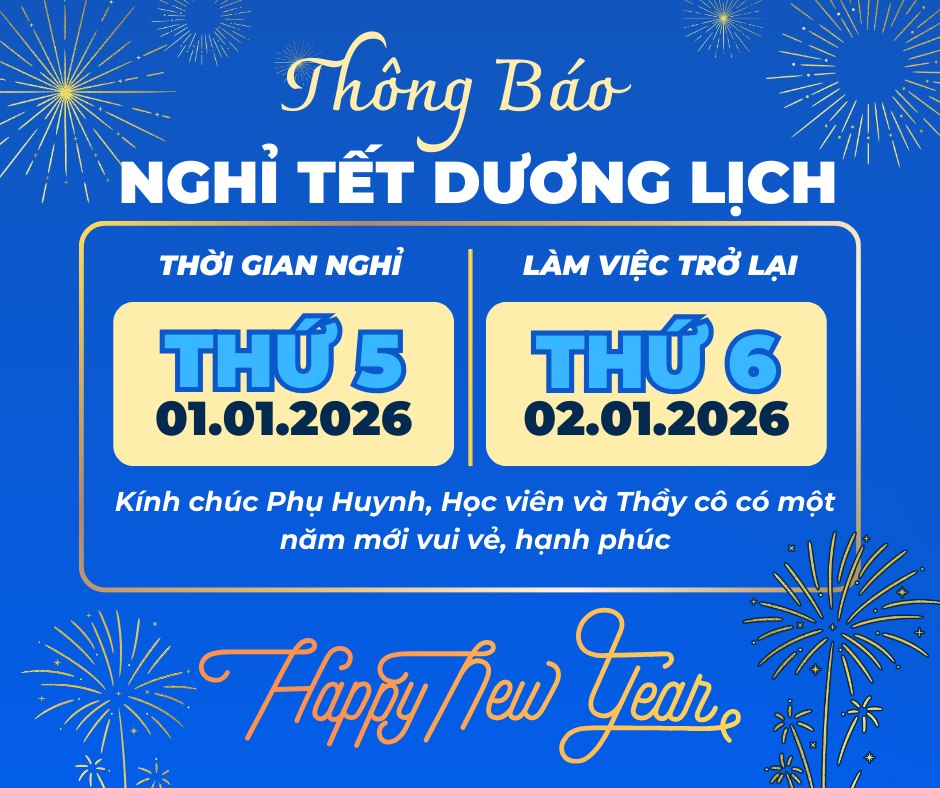 THÔNG BÁO LỊCH NGHỈ TẾT DƯƠNG LỊCH Trung Tâm Ngoại Ngữ ECO xin trân trọng [...]