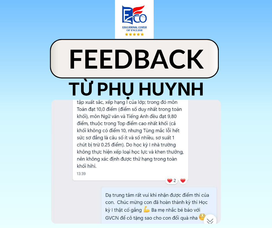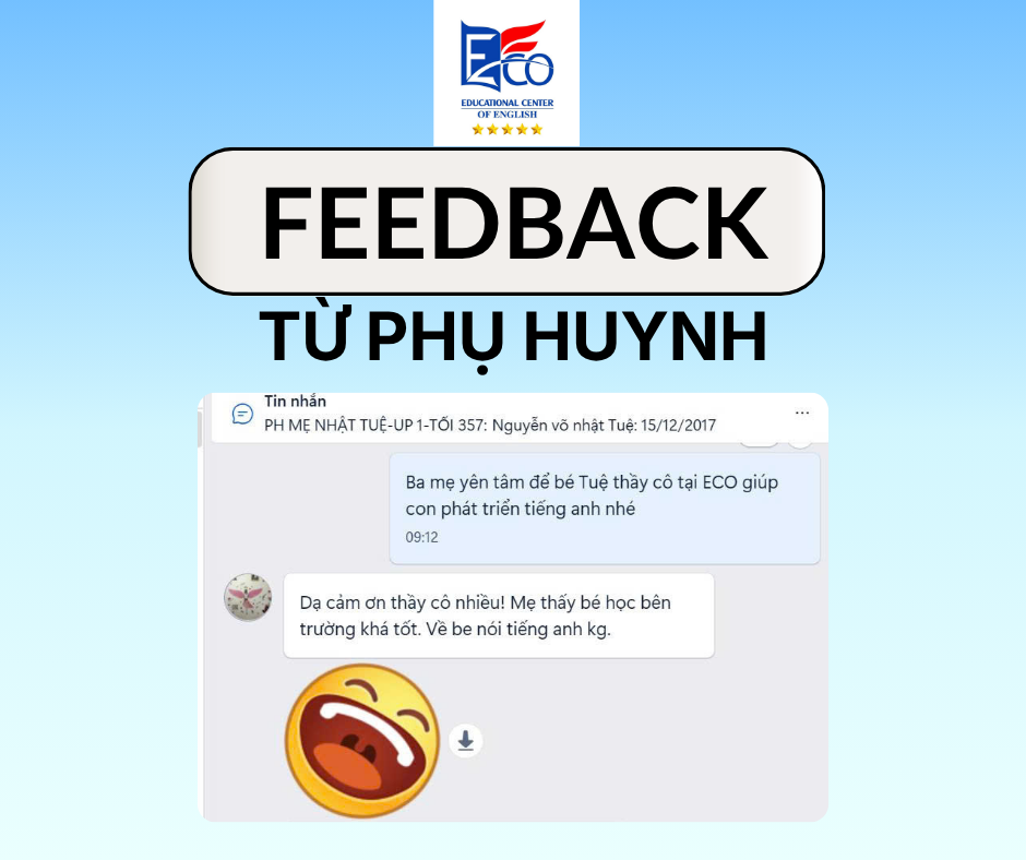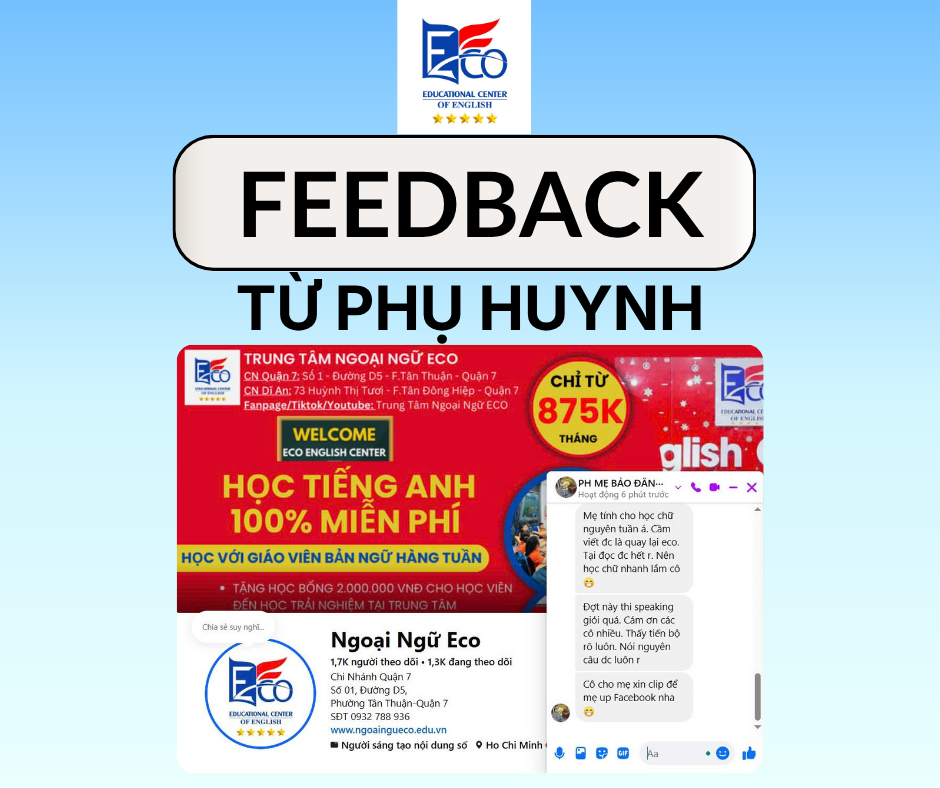 FEEDBACK TỪ PHỤ HUYNH CỦA ANH NGỮ ECO Fanpage: Trung Tâm Ngoại Ngữ ECO